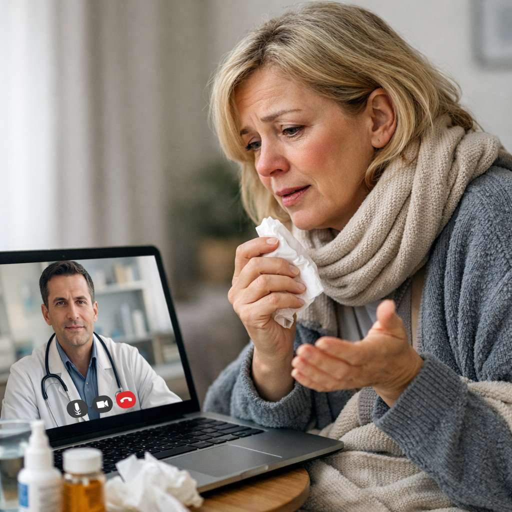 Durante a videoconsulta, o médico avalia os seus sintomas atuais, o seu historial clínico, sinais de alarme e a probabilidade de se tratar de Gripe A ou outra infeção respiratória. O médico também determina se há necessidade de realizar testes, identifica fatores de risco para complicações e define o tratamento mais adequado. Se clinicamente necessário, poderá emitir baixa médica (CIT) devido à incapacidade temporária para trabalhar e ao risco de contágio.
